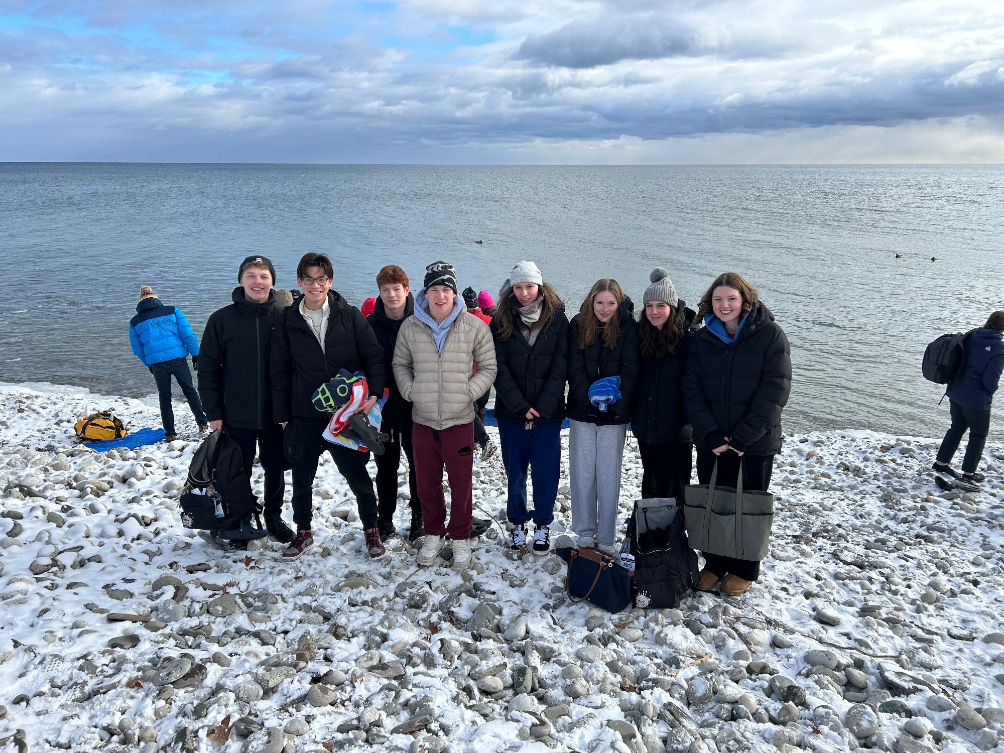 At noon on New Year’s Day, ESWIM swimmers joined Head Coach Marc Spackman and the LOST Swim Team for a Polar Bear Dip in Lake Ontario. With air temperatures well below freezing and water hovering just above zero, it was cold, bracing, and unforgettable.